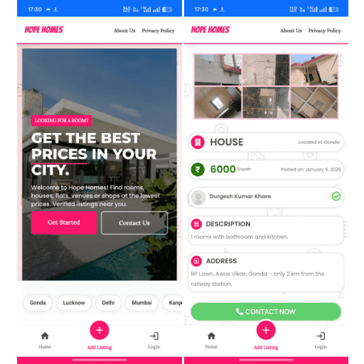 Welcome to Hope Homes! Find rooms, houses, flats, venues or shops at the lowest prices. Verified listings near you.